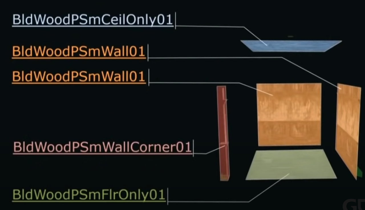 - 부품 : 모듈을 구성하는 기본 요소 (바닥, 벽, 천장 등)