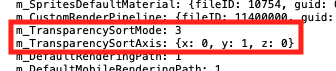 m_TransparencySortMode를 3으로 설정하고